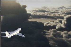 For a simple 20 second sequence of a plane flying through clouds there is a lot involved.